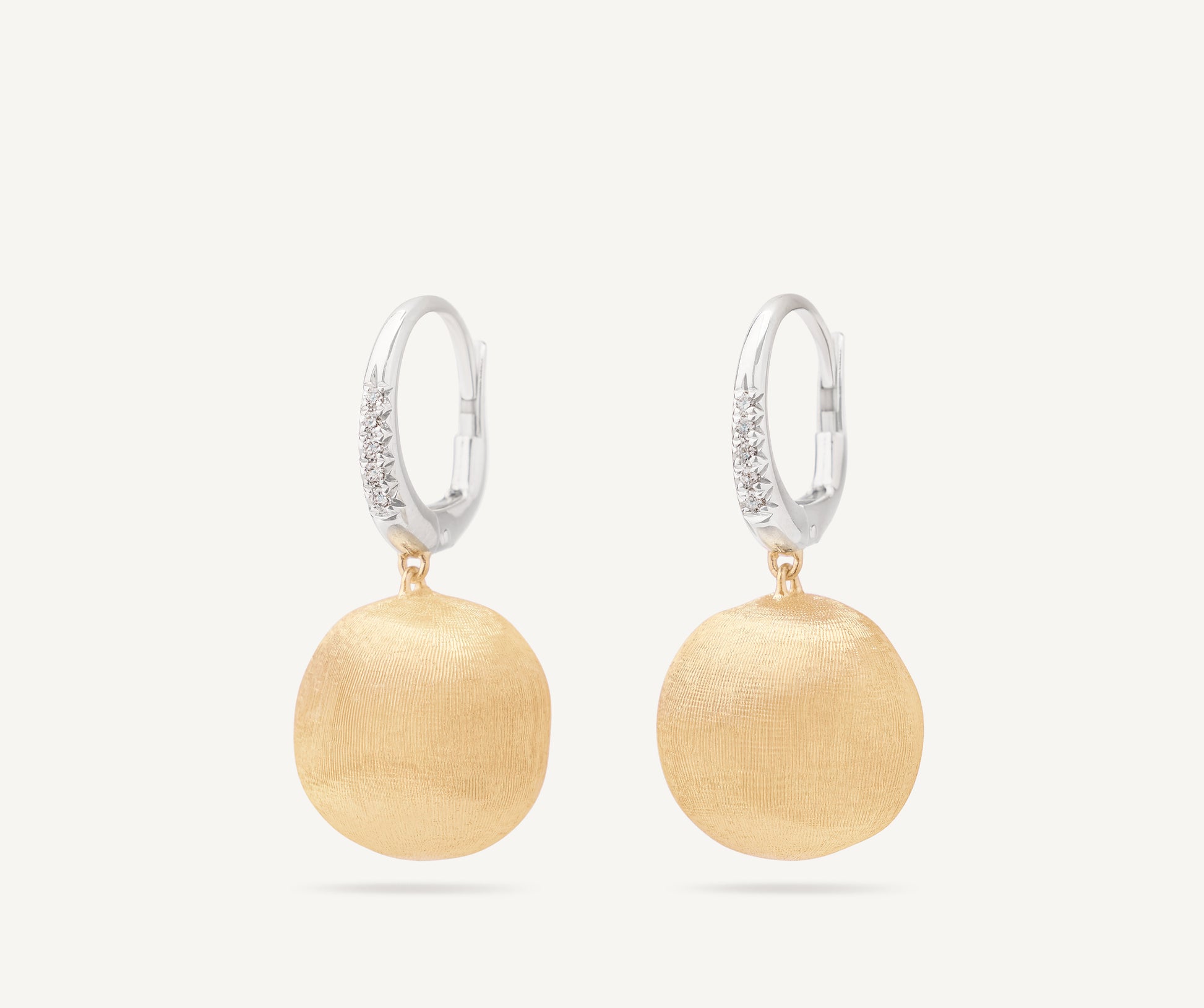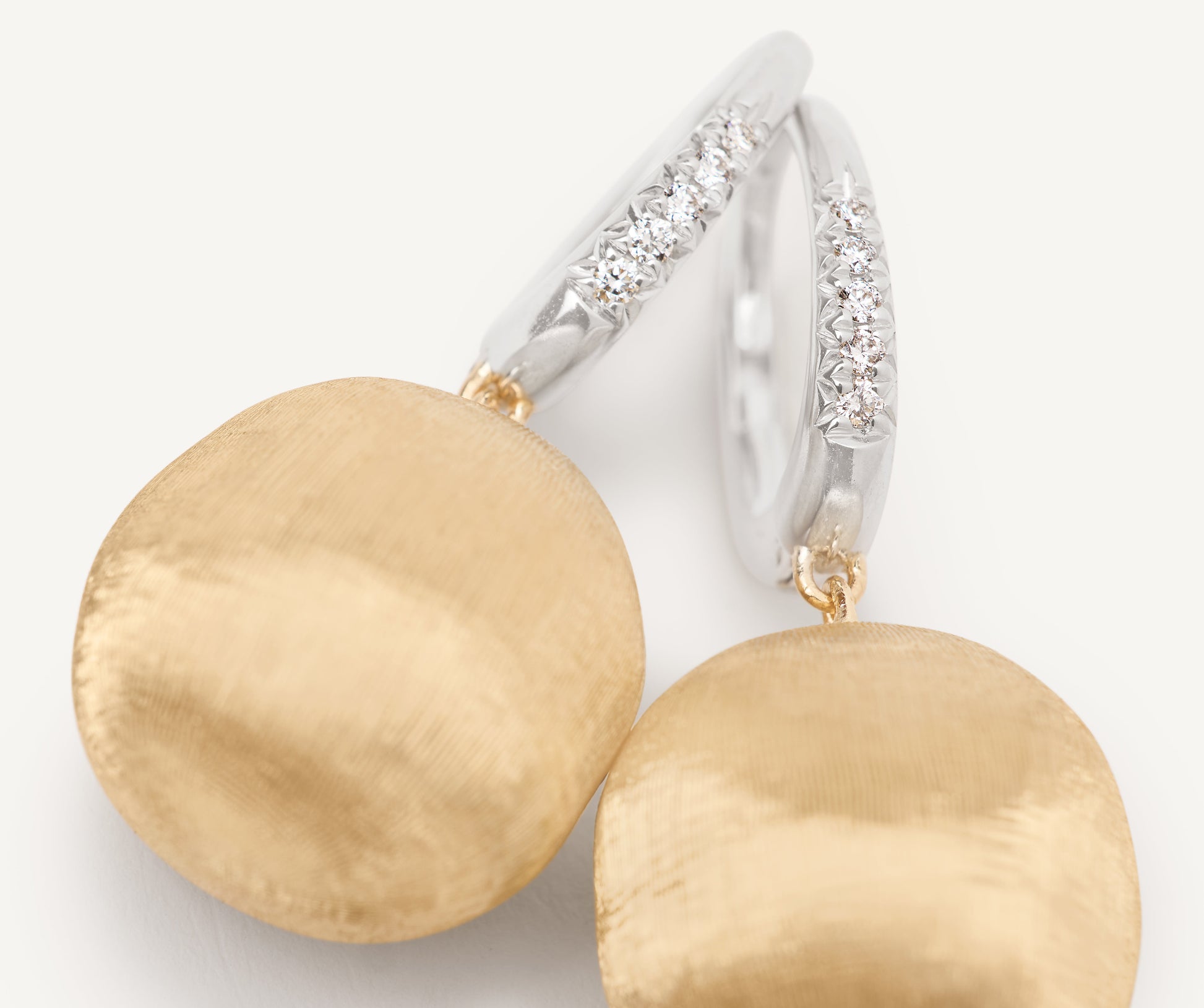 A stylish design for these 18K yellow gold earrings, finely hand-engraved using the ancient Florentine technique, which gives our gold a fine, brushed texture. Each earring has been set with an elegant diamond pav�� clip.