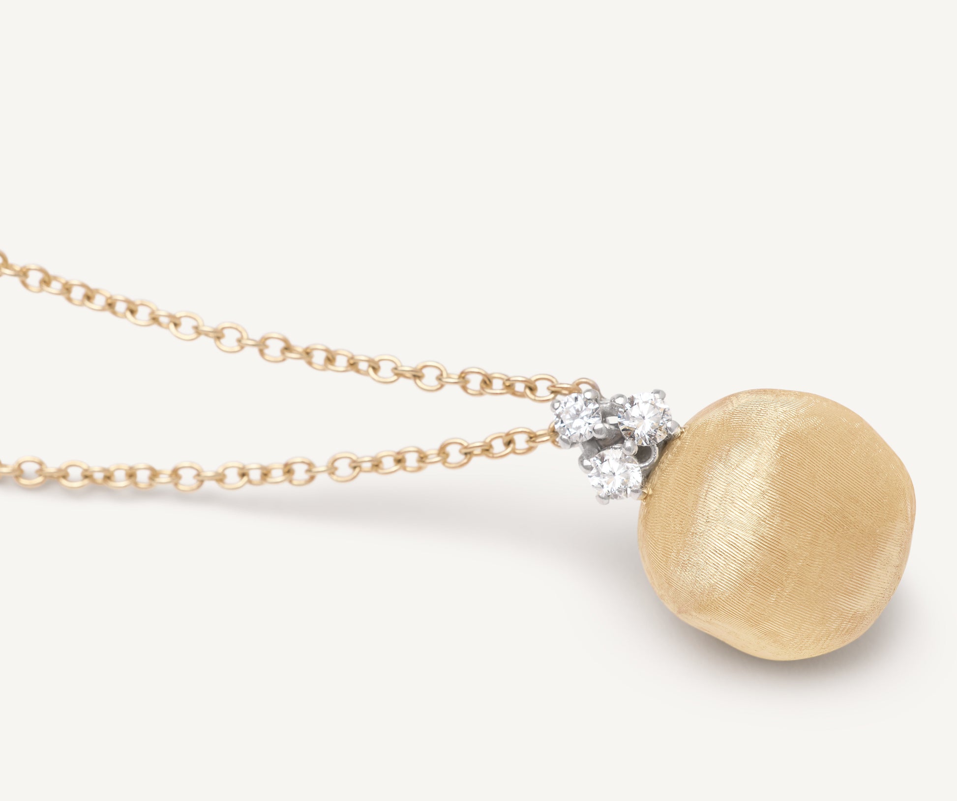 An 18K yellow gold link chain and pendant with an irregular, textured surface. The pendant is finely hand-engraved using the ancient Florentine technique and accented with brilliant-cut diamonds. For maximum impact, pair this pendant with other designs from the collection.