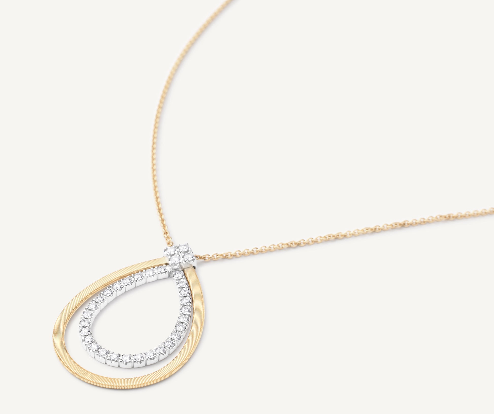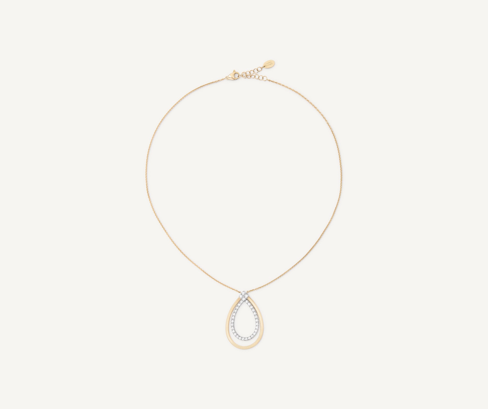 Sophisticated and linear in design, this necklace in 18K yellow gold comes with an adjustable chain and features a flat-coil drop pendant, embellished with brilliant-cut diamonds. Versatile and stylish, it is the perfect choice for everyday wear.