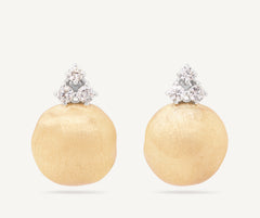 A delicate design for these 18K yellow gold earrings, finely hand-engraved using the ancient Florentine technique, which gives our gold a fine, brushed texture. Each earring has been set with three alluring diamonds on the top.