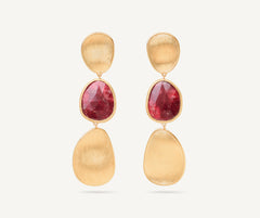 Vibrant and feminine, these triple earrings perfectly balance versatility with understated elegance. The 18K yellow gold leaves are delicately hand-engraved using the ancient Florentine technique, while the central red thulite leaf features a sophisticated, exclusive cut. The ideal accessory to complete any look with a touch of refined elegance.