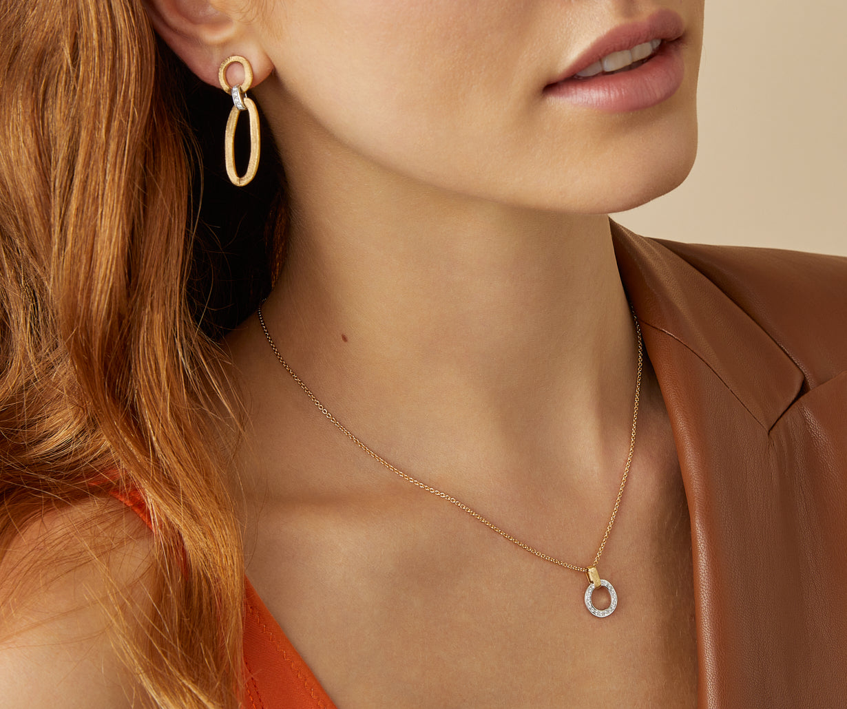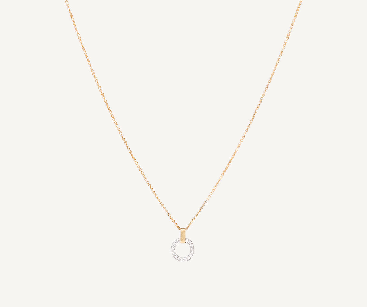 A refined pendant necklace with a diamond-studded link in 18kt white gold, finely hand-engraved using the ancient Florentine technique which gives our gold a fine, brushed texture.