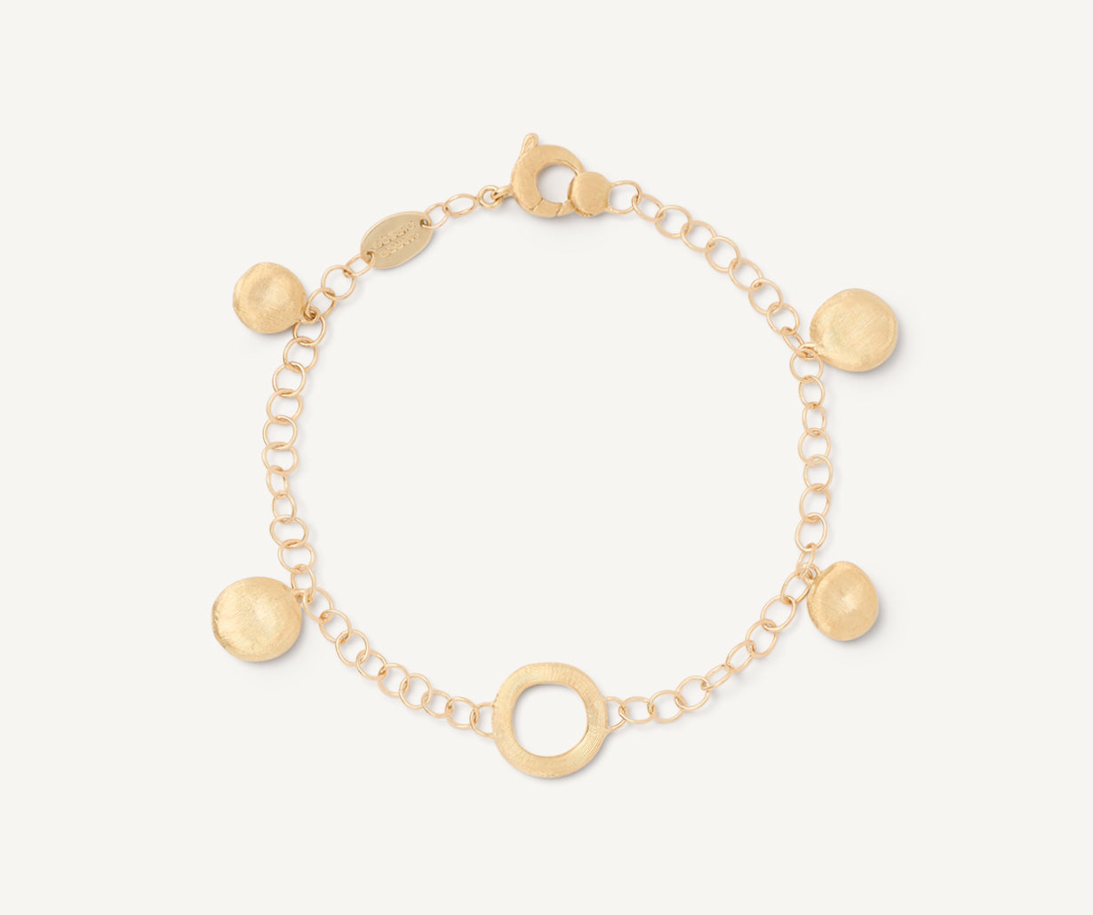 The 18kt yellow gold charm bracelet, finely hand-engraved with an ancient Florentine technique, has an irregular design. It is perfect to mix and match with the different stackable pendants of the Jaipur collection.