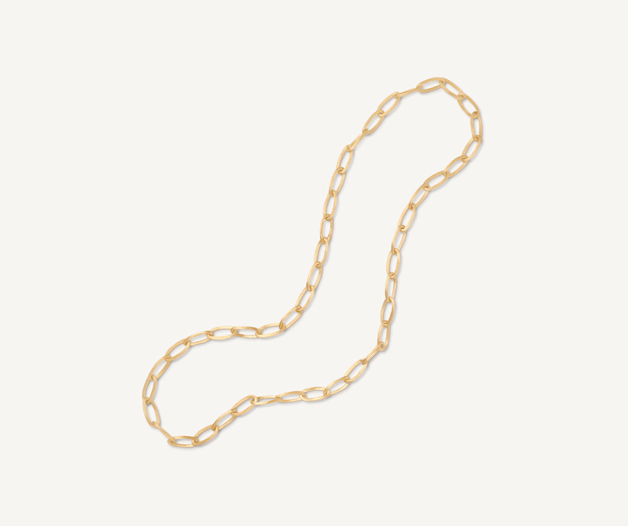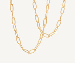 This extraordinary necklace, featuring linked oval elements of 18kt yellow gold, is finely hand-engraved using the ancient Florentine technique. Two carefully positioned clasps make it possible to transform the jewel into a bracelet and to wear it in various combinations.