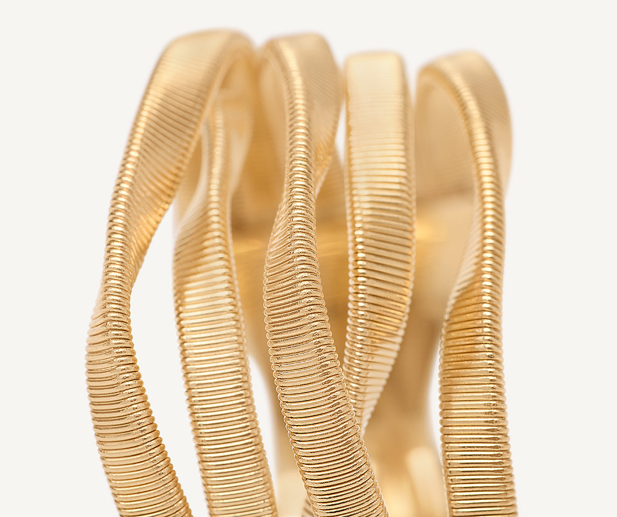This feminine ring is the perfect choice whatever the occasion. In 18kt yellow gold ring, boasting striking volumes and unique wearability, it is crafted from five spiral threads carefully created with the exclusive coil technique. An elegant and modern jewelry piece to treat yourself or a loved one.