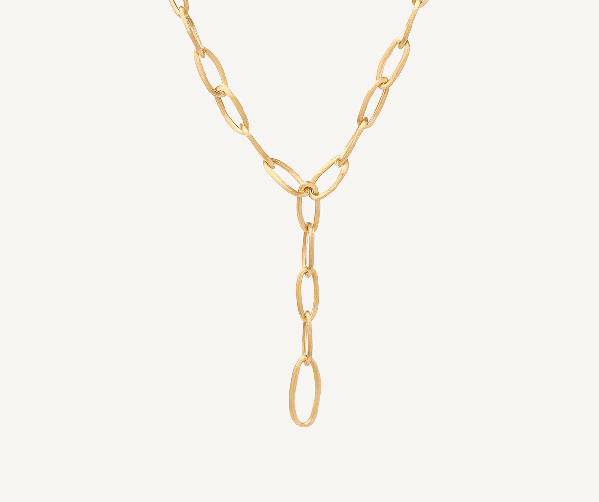 This boldly styled lariat necklace can be worn in a variety of ways and lengths. Crafted from 18kt yellow gold, it is finely hand-engraved using the ancient Florentine technique which gives our gold a fine, brushed texture.