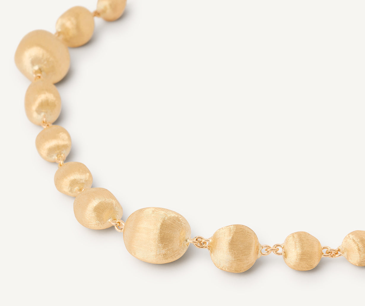 This sophisticated 18kt yellow gold bracelet features a series of mixed beads in different sizes. Its irregular surface is finely hand-engraved with an ancient Florentine technique which gives our gold a fine, brushed texture.
