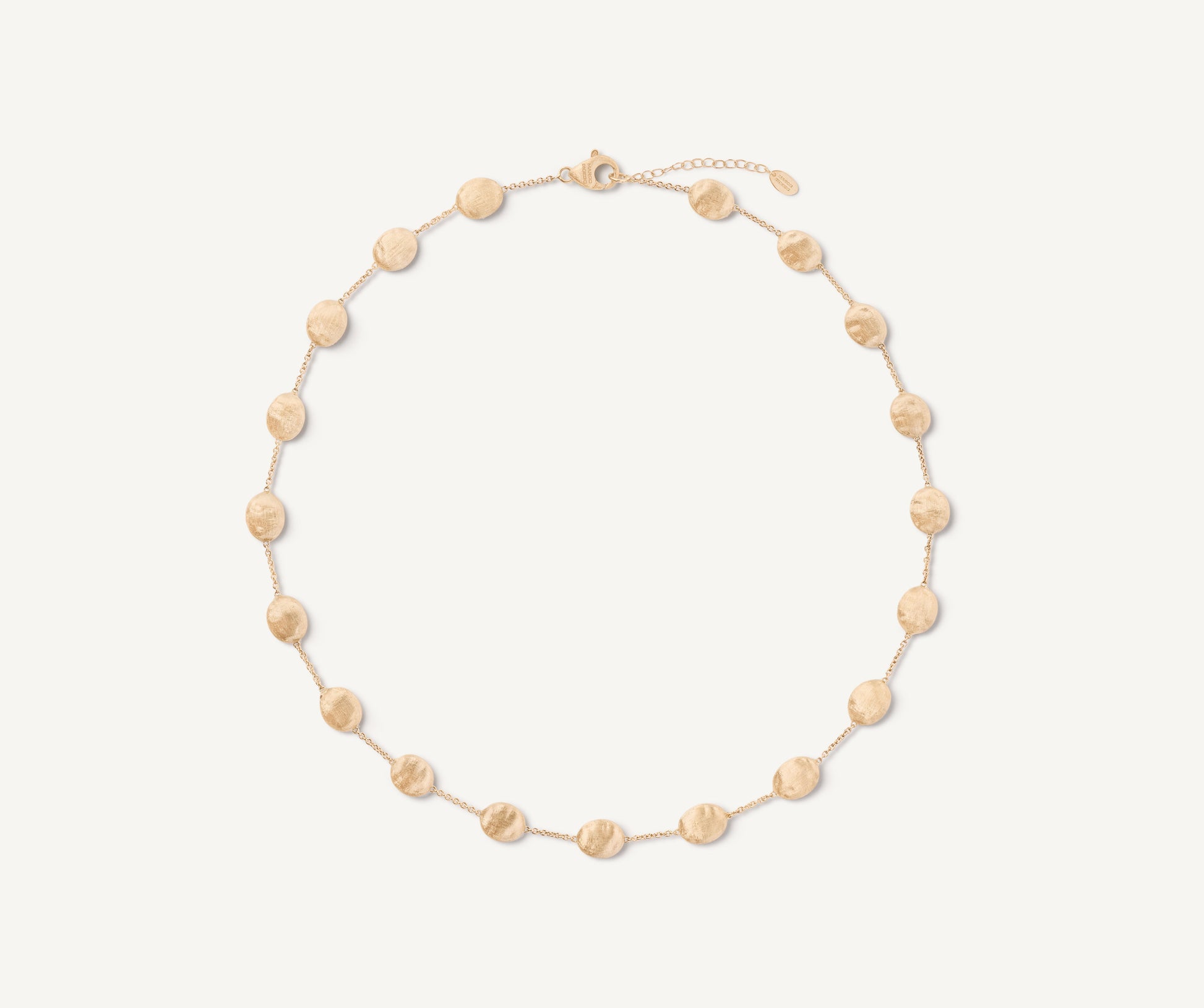 An elegant necklace enriched by 18kt yellow gold medium oval elements, finely hand-engraved using an ancient Florentine technique. A timeless classic, perfect for every occasion. Adjustable chain.