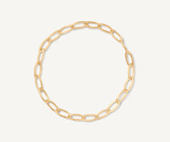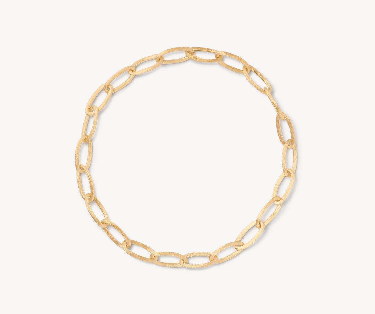 This bold and elegant necklace features a balanced play of full and empty volumes. The chain is made up of oval elements in 18kt yellow gold, finely hand-engraved using the ancient Florentine technique which gives our gold a fine, brushed texture.