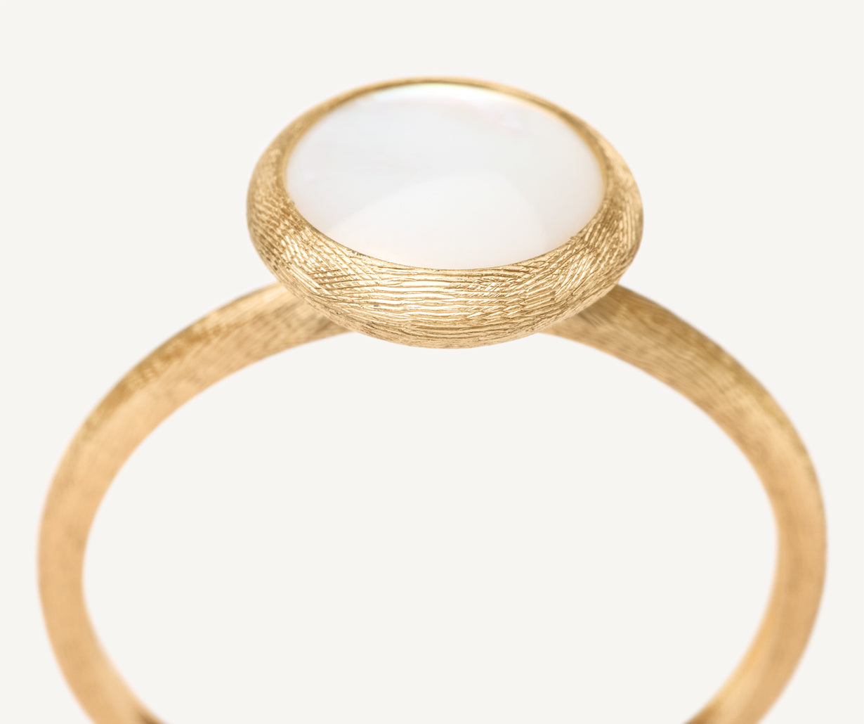 Ring in 18kt yellow gold hand-engraved with the ancient Florentine technique and embellished with a mother of pearl. Elegant on its own, it is the perfect addition to a stackable look.