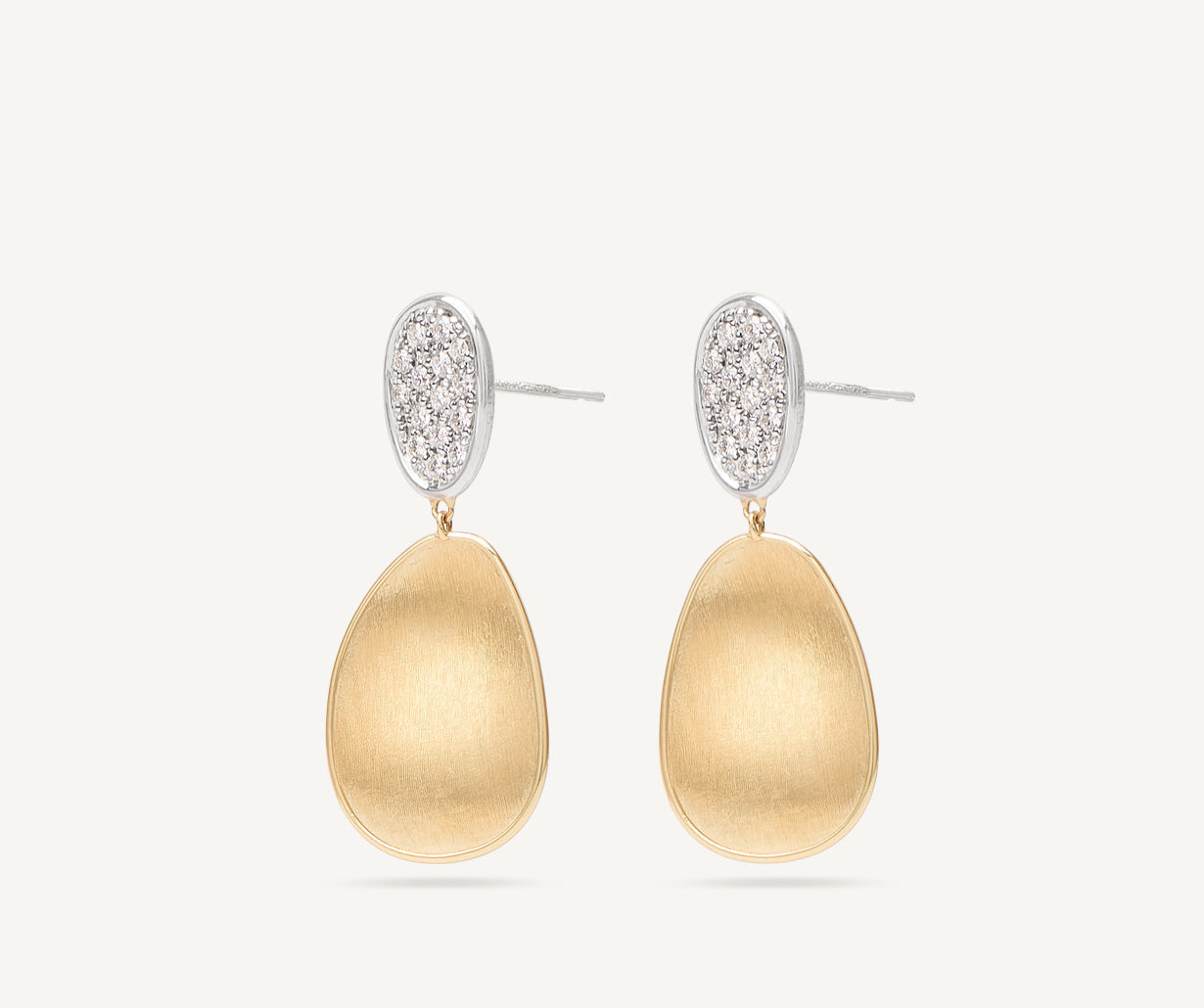 18kt yellow gold leaves, finely hand-engraved using an ancient Florentine technique, are embellished by a brilliant-cut diamond pav��, making this elegant and versatile earring a veritable must-have, perfect for everyday wear.
