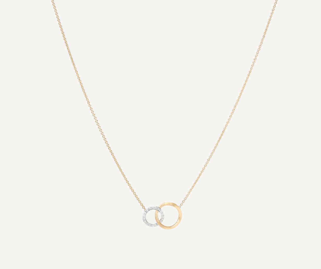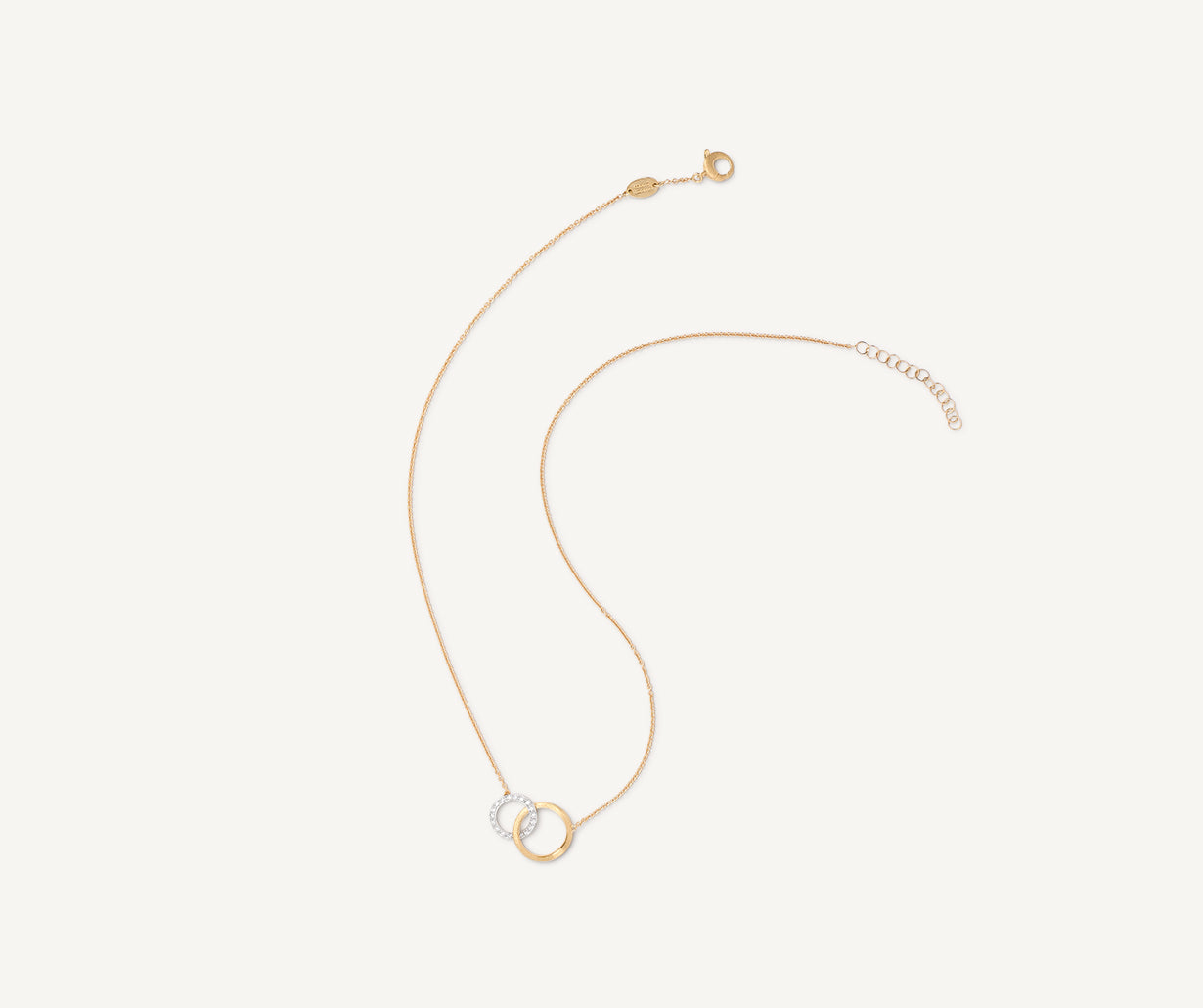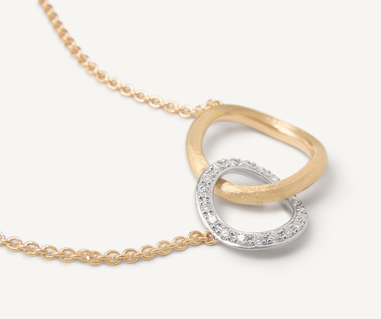 This refined bracelet symbolises an unbreakable bond, with a diamond-studded white gold link locking into a circular one in 18kt yellow gold, finely hand-engraved using an ancient Florentine technique. An adjustable, versatile chain ensures the perfect fit around every wrist.