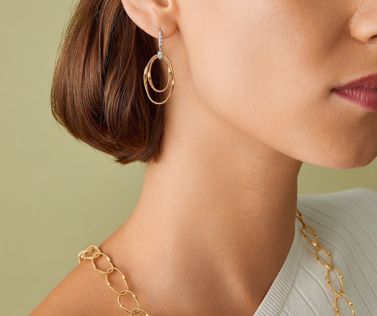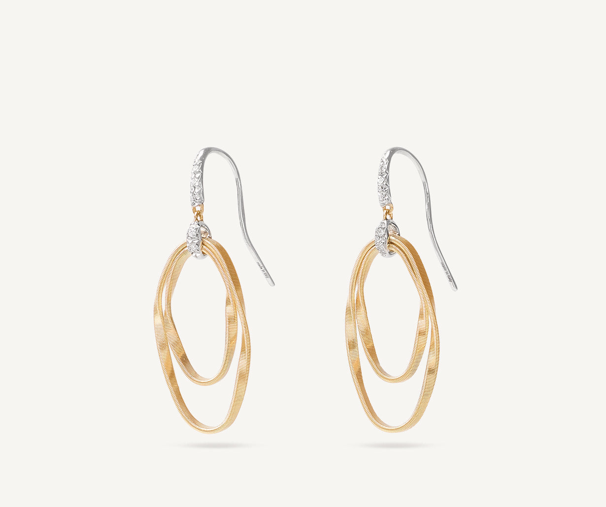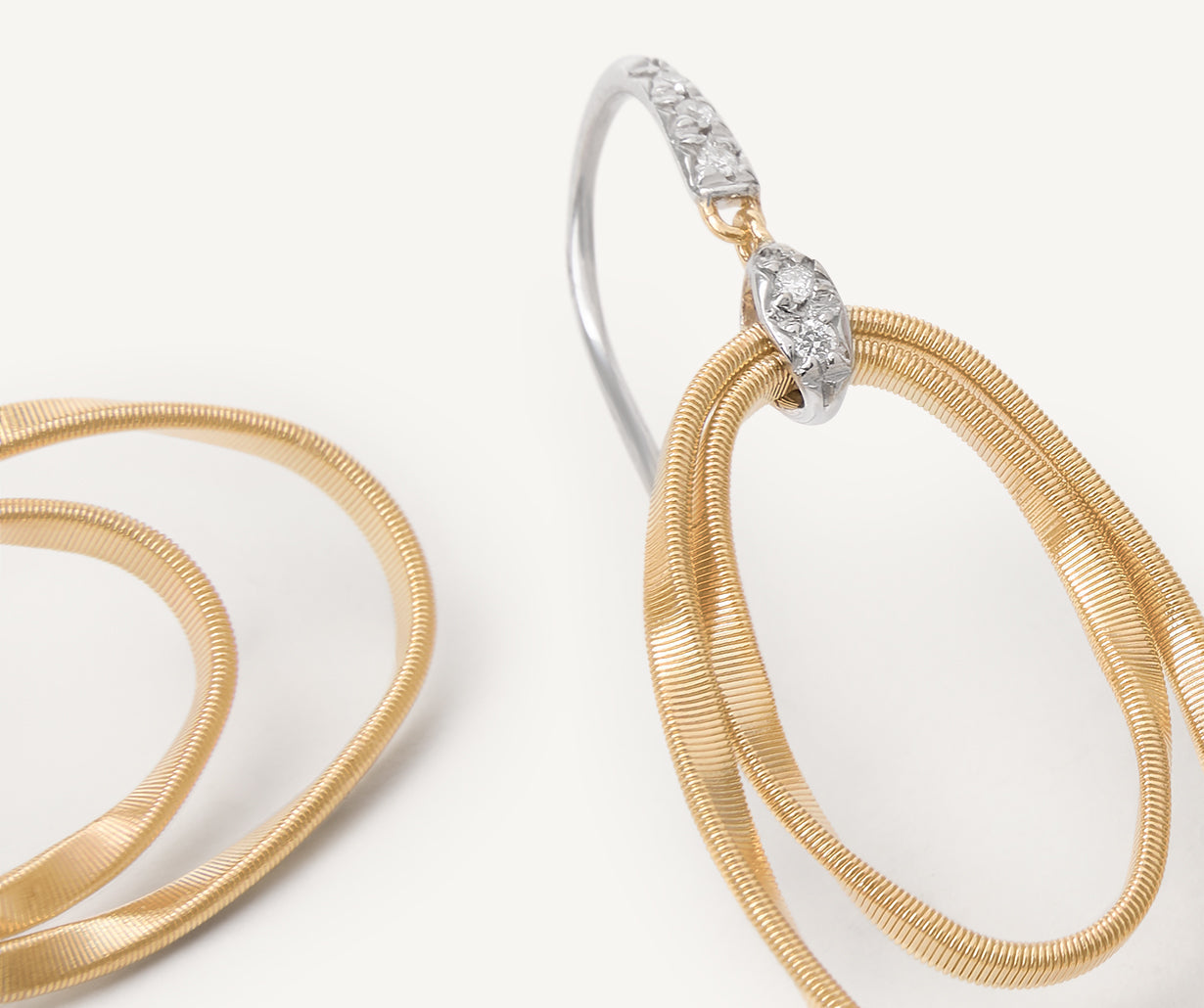 With their understated elegance, these romantic 18kt yellow gold earrings feature a pair of oval twisted coils, joined together by a pendant bail featuring a brilliant-cut diamond pav��.