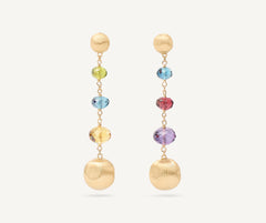 18kt yellow gold duster earrings, with hand-engraved gold beads separated by graduated gemstone accents. The beads are finely hand-engraved using an ancient Florentine technique, which gives our gold a fine, brushed texture.