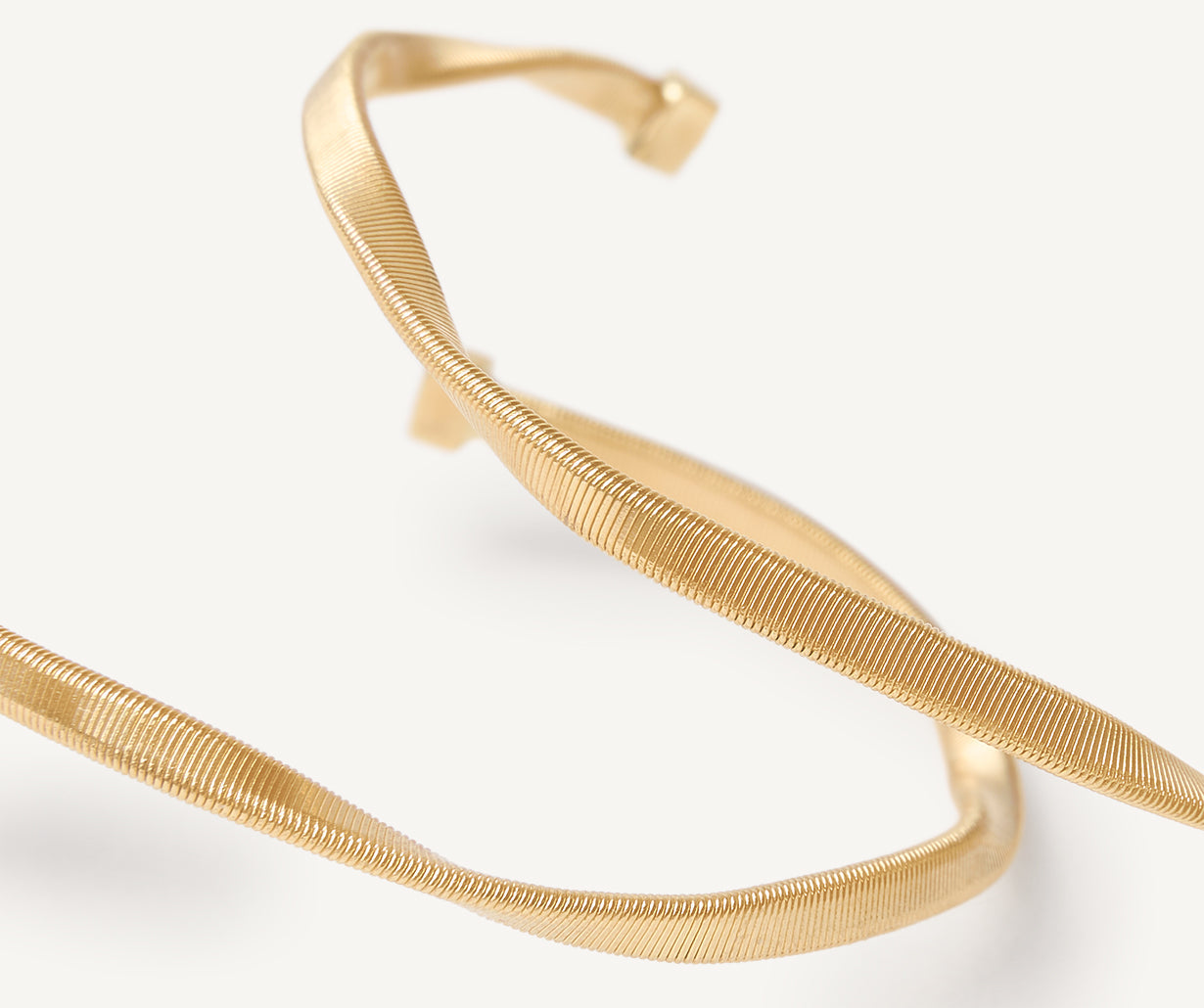Characterised by smooth and elegant lines, these sophisticated 18kt yellow gold hoop earrings feature a striking twisted coil effect. This special technique grants the jewel unparalleled radiance.