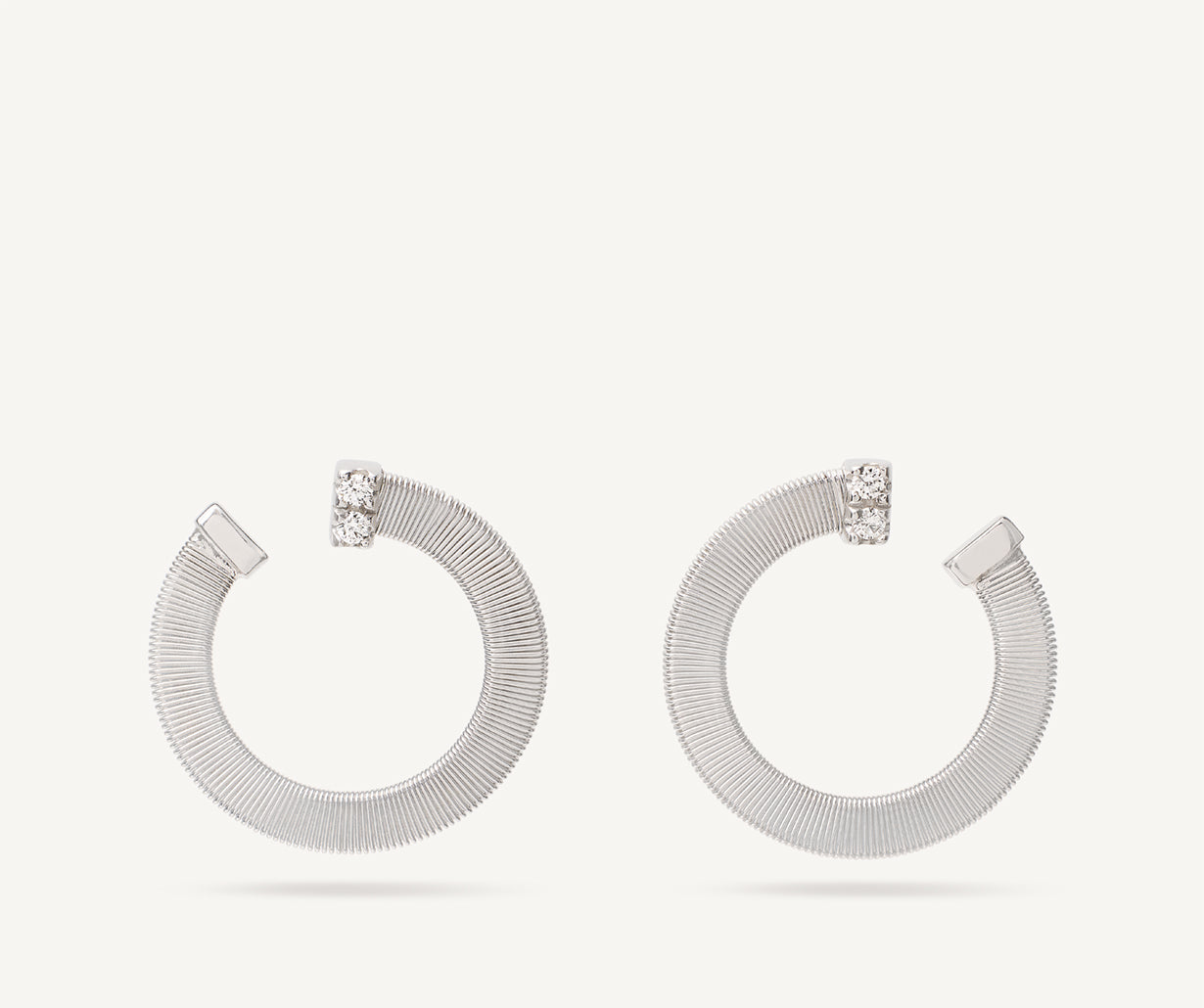 Elegantly contemporary, these flat-coil earrings envelop the ear, offering unique and sophisticated wearability. Crafted in 18kt white gold, they are embellished by a double brilliant-cut diamond element.