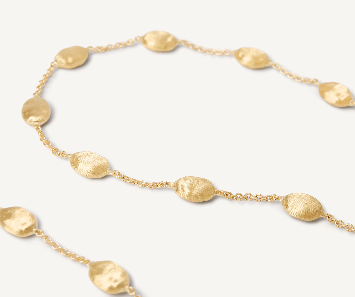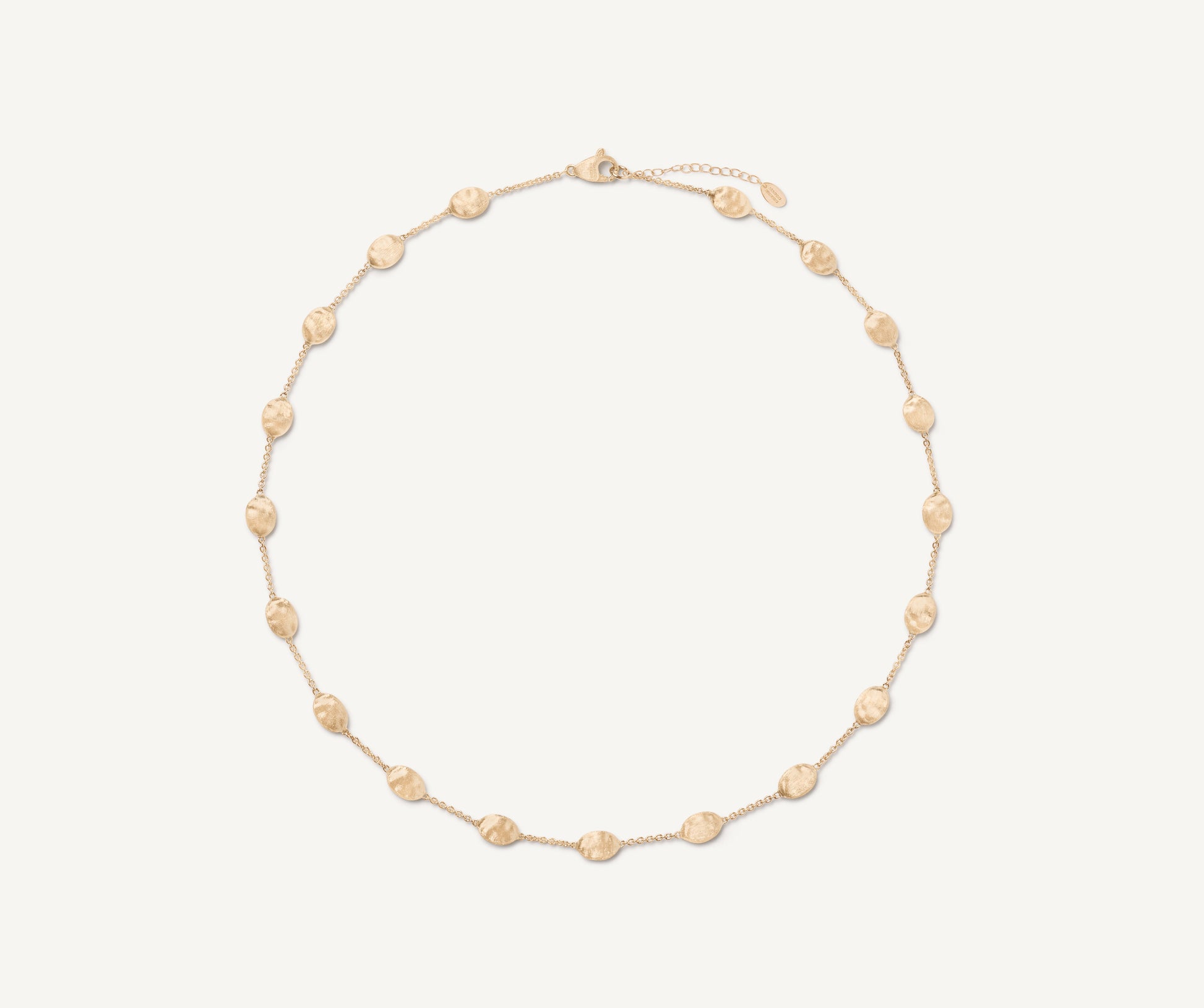 An elegant necklace enriched by tiny 18kt yellow gold oval elements, finely hand-engraved using an ancient Florentine technique. A timeless classic, perfect for every occasion. Adjustable closure.