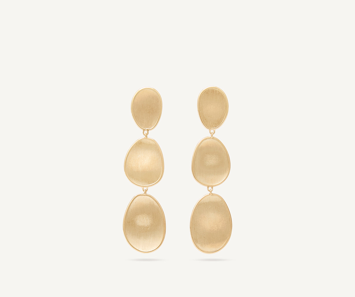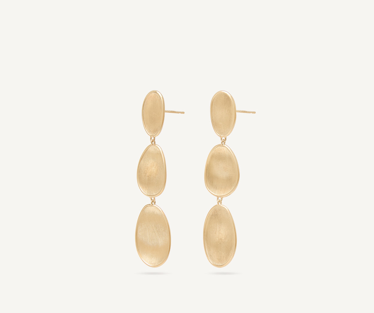 Romantic and feminine, these triple earrings are the perfect blend of versatility and understated elegance. The 18kt yellow gold leaves are finely hand-engraved using an ancient Florentine technique. Perfect to complete the look and add a touch of light to any outfit.