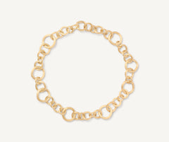 This uncompromising, bold and elegant necklace features a balanced play of full and empty volumes. The chain is made up of variously sized circular elements in 18kt yellow gold, finely hand-engraved using an ancient Florentine technique.
