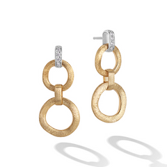 Jaipur Link Collection Pair Two-Tone Brushed & Polished 18 Karat Double Circle Earrings 0.08tw Round G/H In Color SI-1 In Clarity Diamonds BY MARCO BICEGO OB1759 B YW