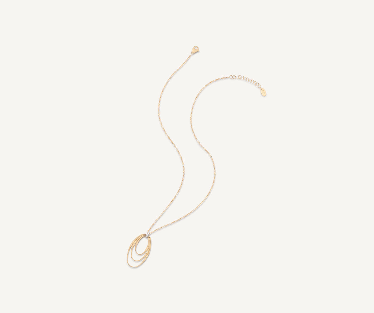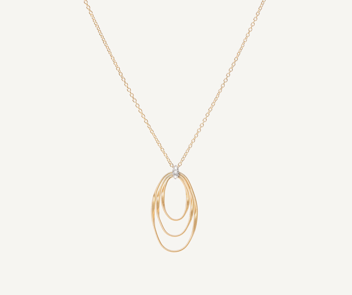 This romantic 18kt yellow gold drop necklace is characterised by three twisted coil elements, joined together by an elegant pendant bail featuring a brilliant-cut diamond pav��.