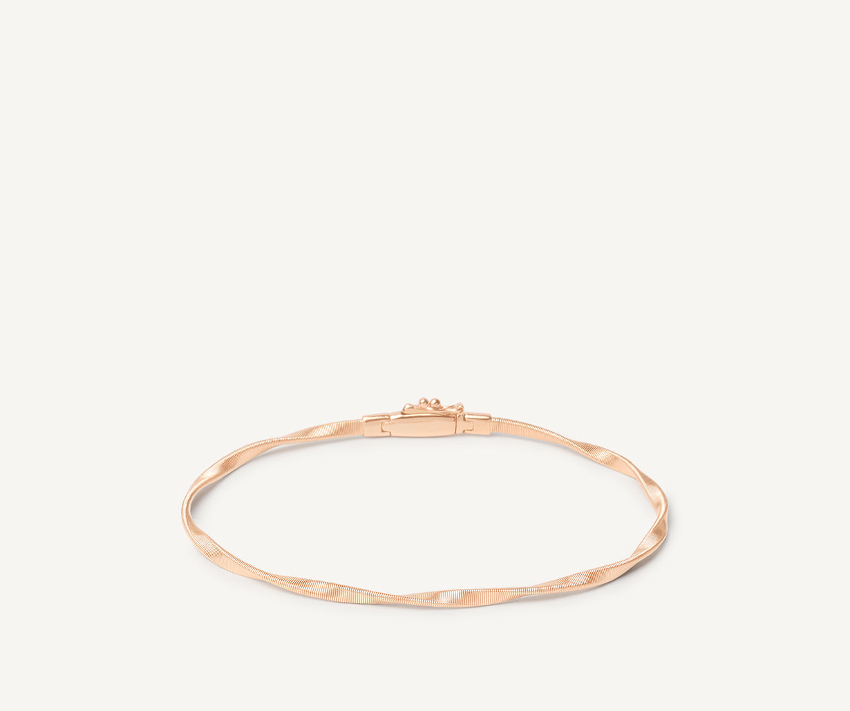 An elegant strand of twisted threads in 18kt rose gold, carefully created with the exclusive coil technique. Perfect on its own, stunning paired with the other bracelets in the collection. Essential in its sophistication.