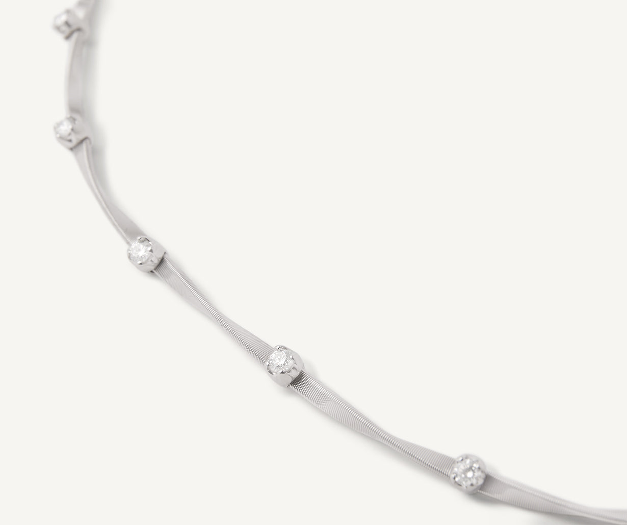 An elegant strand of twisted coil set in place with five brilliant-cut diamonds. A sophisticated necklace for everyday wear. Crafted from 18kt white gold, it is an extraordinary style statement.