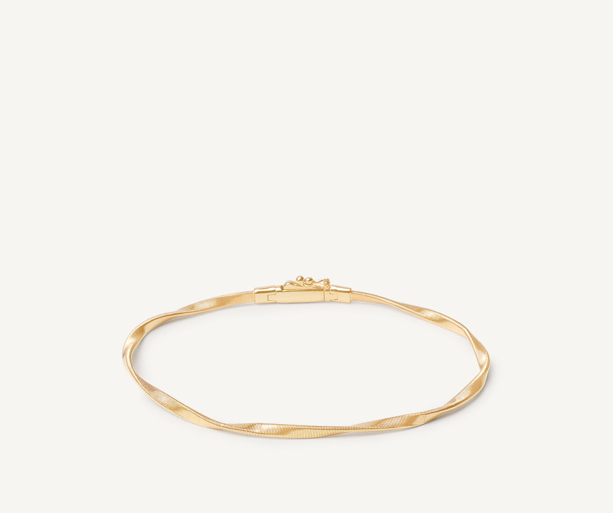 An elegant strand of twisted threads in 18t yellow gold, carefully created with the exclusive coil technique. Perfect on its own, stunning paired with the other bracelets in the collection. Essential in its sophistication.