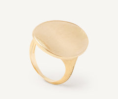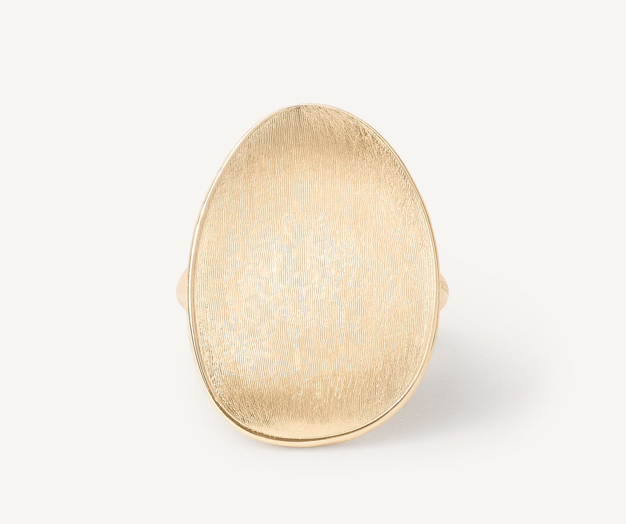 Cocktail ring featuring an elegant design and an irregular surface. Crafted in 18kt yellow gold, it is finely hand-engraved using an ancient Florentine technique, granting it extraordinary lustre and a silky surface.