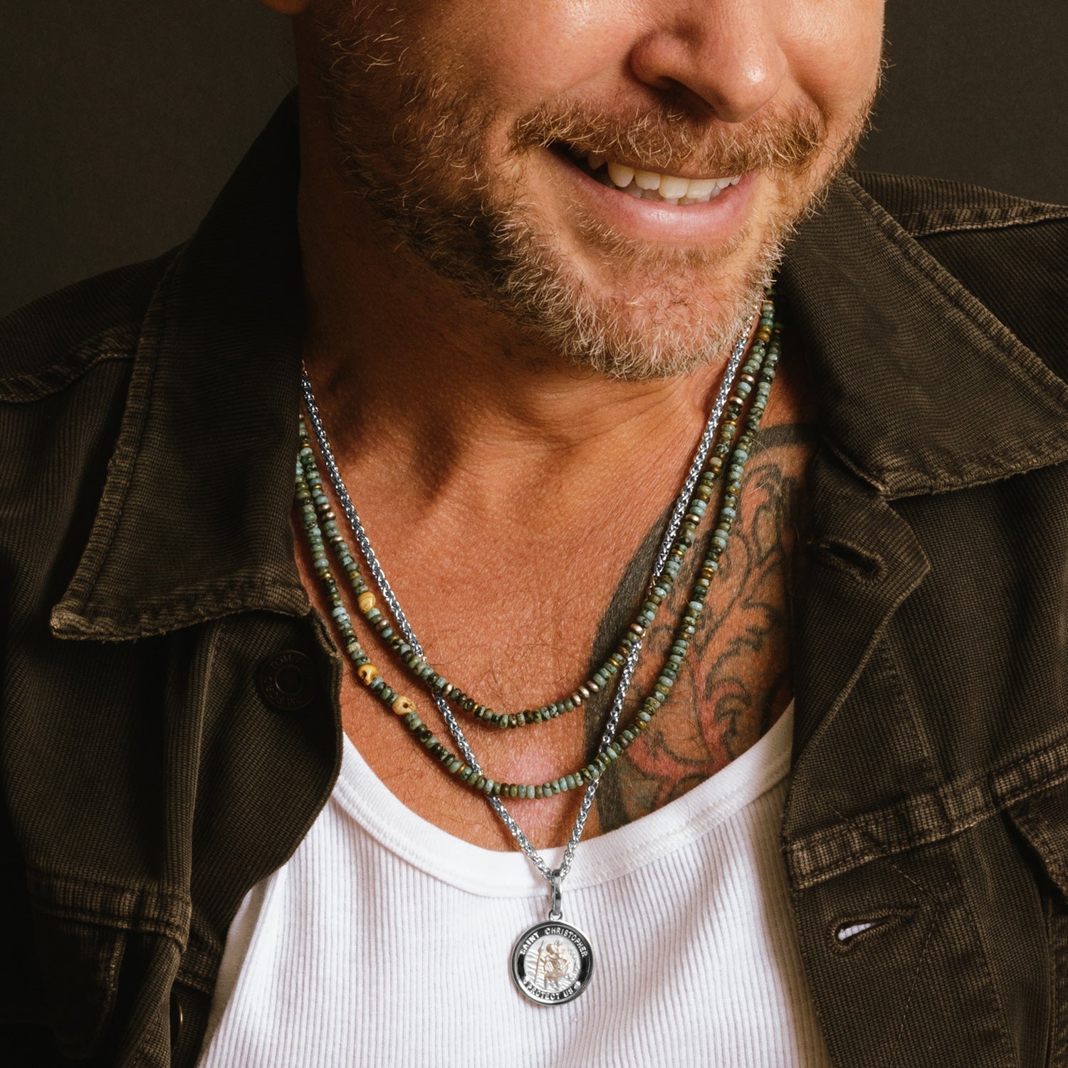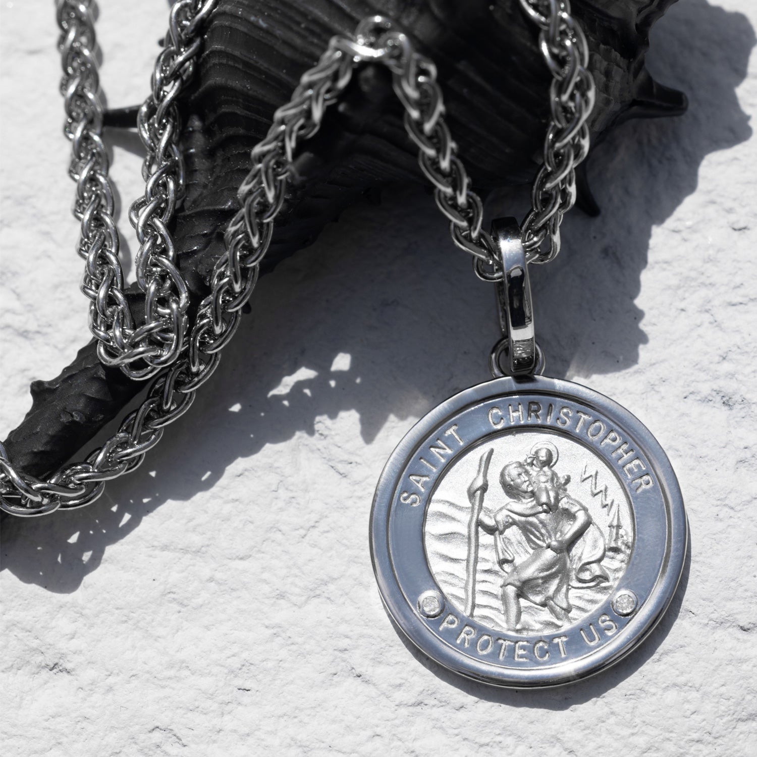Men's Mr. LOWE Silver St. Christopher Pendant on Wheat Chain Necklace - 24"