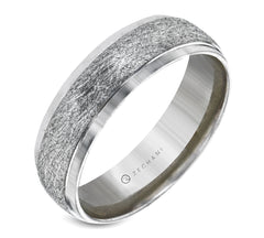 This ring features a distinctive brushed center with a crisscross texture, framed by smooth polished edges. Its mix of rugged detailing and sleek shine creates a refined modern look.