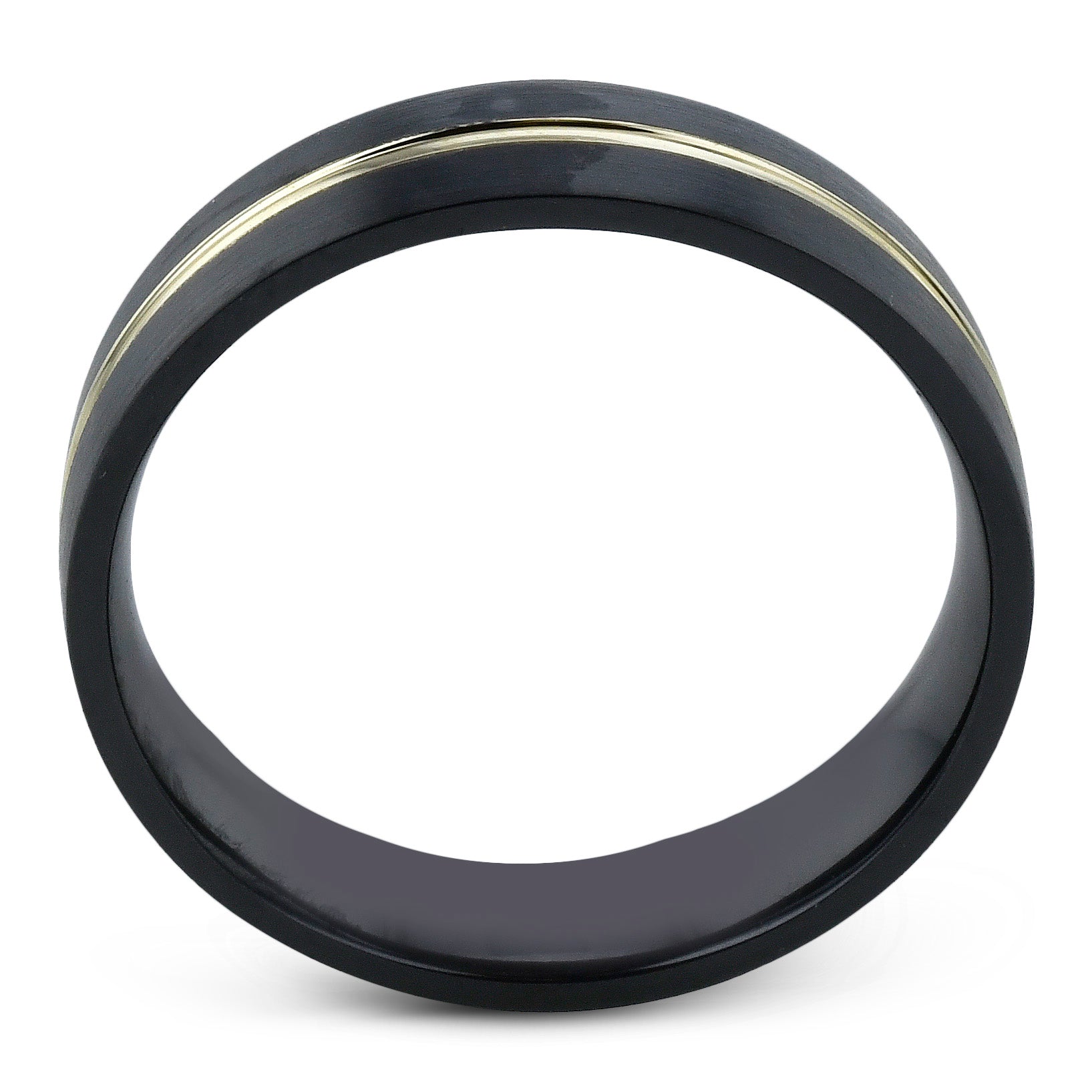 This men's band features a 14k yellow gold stripe seamlessly integrated through a premium zirconium band.
