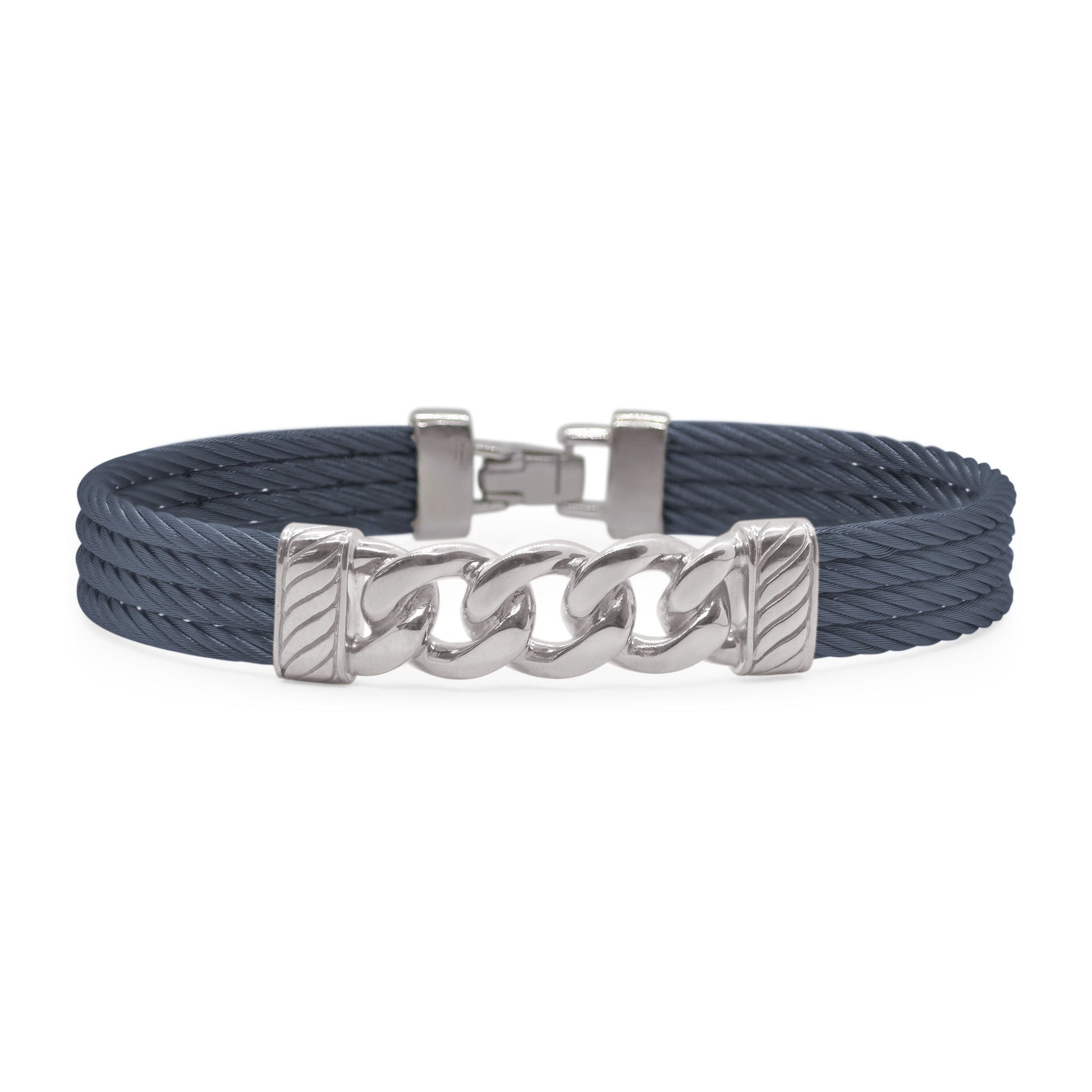 A four row bracelet with a frozen Cuban link station in the center. Imported.