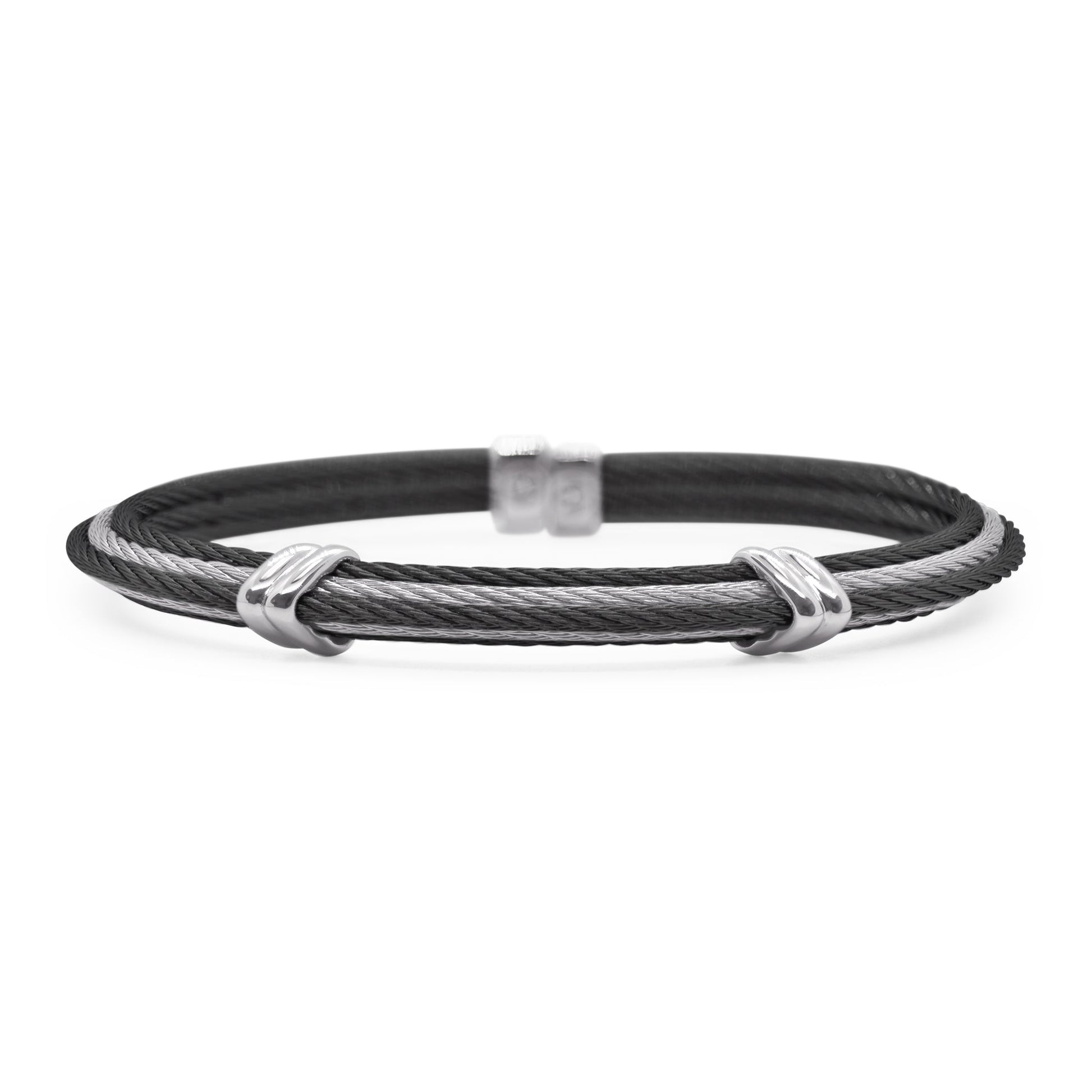 A tiered cuff with dual triangular stations. Imported.