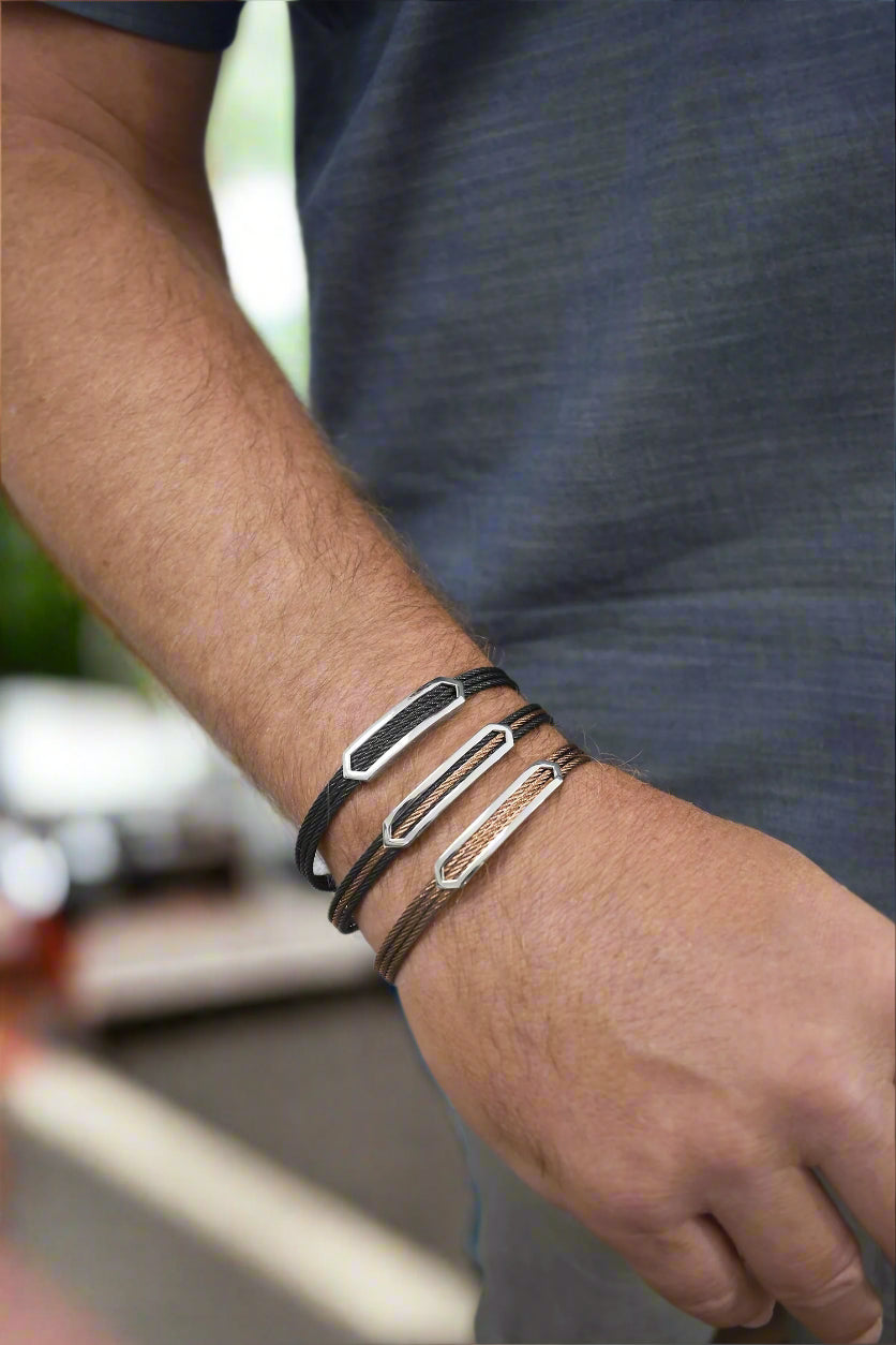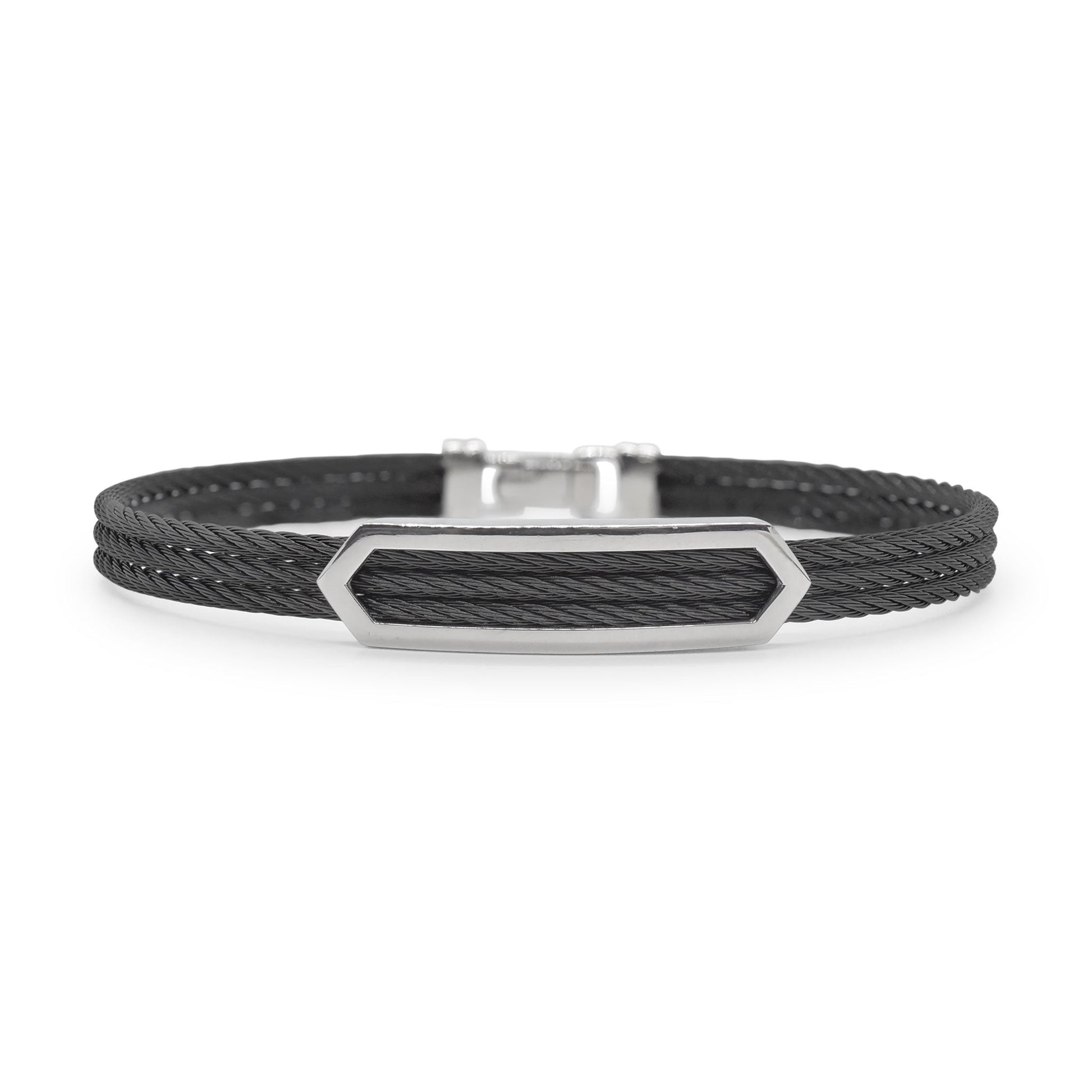 A triple row cable bracelet with an open ID arrow station. Imported.