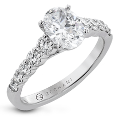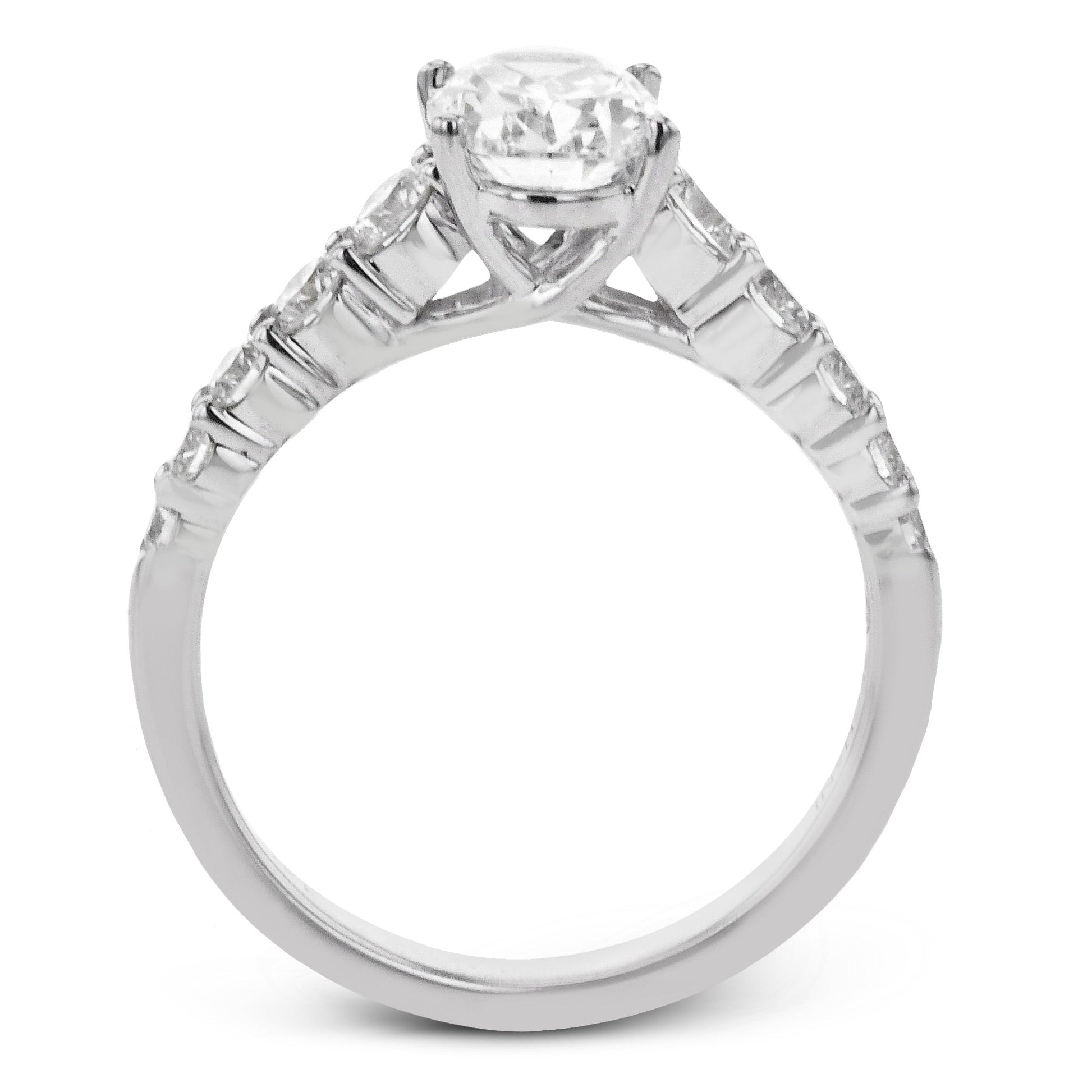This elegant ring features a brilliant oval-cut center diamond set on a polished white metal band, accented with a row of sparkling round diamonds along the shoulders. Its timeless design balances sophistication with radiant brilliance.