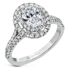 This oval-shaped halo ring is surrounded by two rows of brilliant diamonds, enhancing its radiant centerpiece. Its elegant design offers both timeless sophistication and modern sparkle.