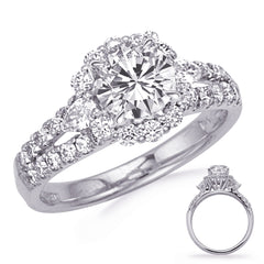 This Engagement Ring is available in 14K White Gold. There are a total of 36 stones. There are Pear Shape with a total carat weight of 0.22 set in a Micro Pave|Prong Set setting.There are Rounds stones with a total carat weight of 0.63 set in a Micro Pave|Prong Set.