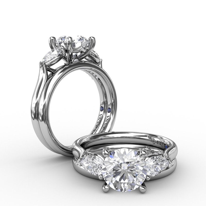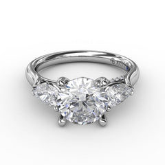 Classic Three-Stone Engagement Ring With Pear-Shape Side Diamonds