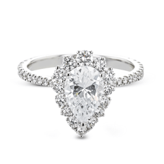 This sparkling engagement ring features a unique halo inspired by a supernova of stars as well as a dazzling array of white diamonds.