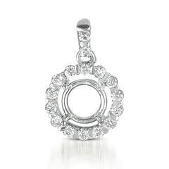 This Pendant is available in 14K White Gold. There are a total of 16 stones. There are Rounds with a total carat weight of 0.23 set in a Prong Set setting.