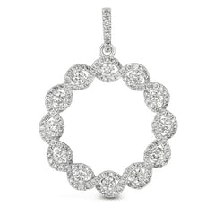 This Pendant is available in 14K White Gold. There are a total of 138 stones. There are Rounds with a total carat weight of 1.41 set in a Channel Set|Micro Prong setting.