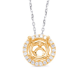 This Pendant is available in 14K Yellow Gold. There are a total of 18 stones. There are Rounds with a total carat weight of 0.07 set in a Micro Prong setting.