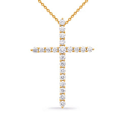 This Pendant is available in 14K Yellow Gold. There are a total of 21 stones. There are Rounds with a total carat weight of 0.74 set in a Micro Prong setting.