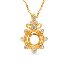 This Pendant is available in 14K Yellow Gold. There are a total of 11 stones. There are Rounds with a total carat weight of 0.1 set in a Bezel Set setting.