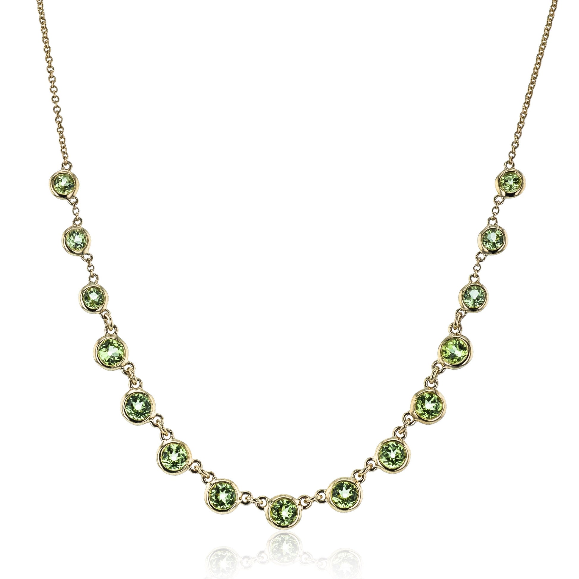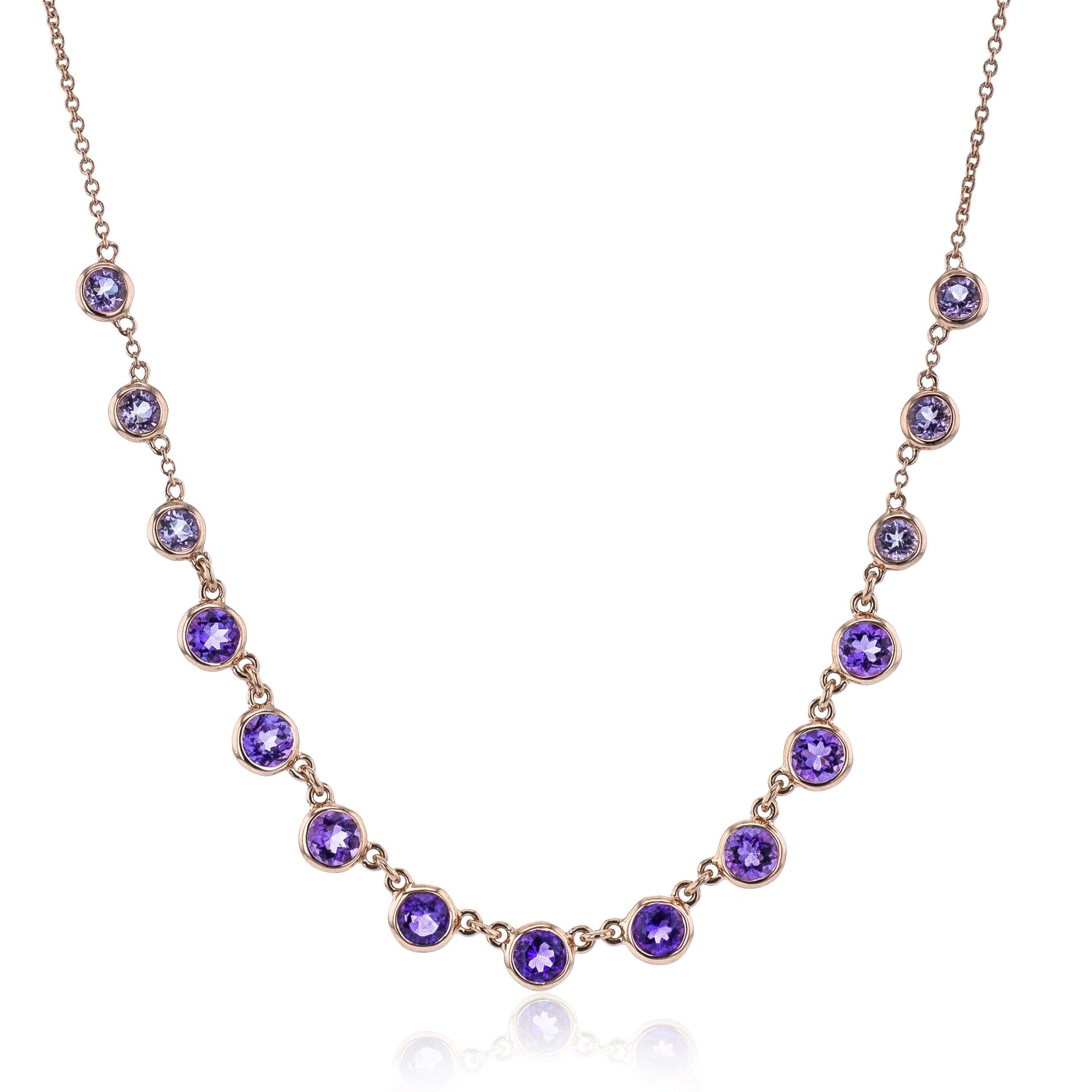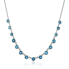This stunning necklace features a graduated arrangement of bezel-set blue gemstones that shimmer across the neckline in a delicate white gold setting. Elegant and vibrant, it’s a perfect statement piece for adding a pop of color and refined sparkle to any ensemble.