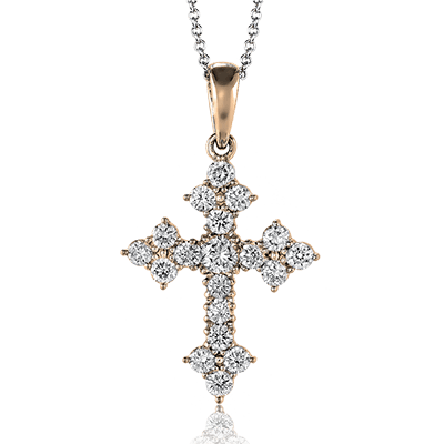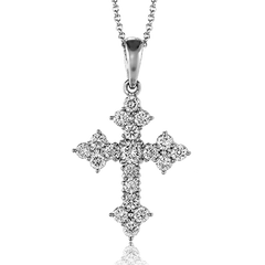 This pendant showcases a cross design entirely set with brilliant round diamonds, creating a radiant and timeless symbol of faith. Its elegant sparkle makes it perfect for both everyday wear and special occasions.