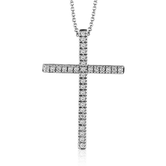 This elegant pendant features a classic cross design adorned with rows of brilliant round diamonds set in polished white gold. Sophisticated and symbolic, it’s a timeless piece that blends faith and fine jewelry in a refined, radiant statement.