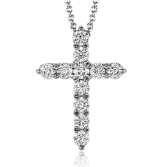 This radiant cross pendant is crafted entirely from round brilliant diamonds, each carefully set to form a graceful and balanced silhouette. Suspended from a polished white gold chain, it offers a timeless symbol of faith with exceptional sparkle and elegance.