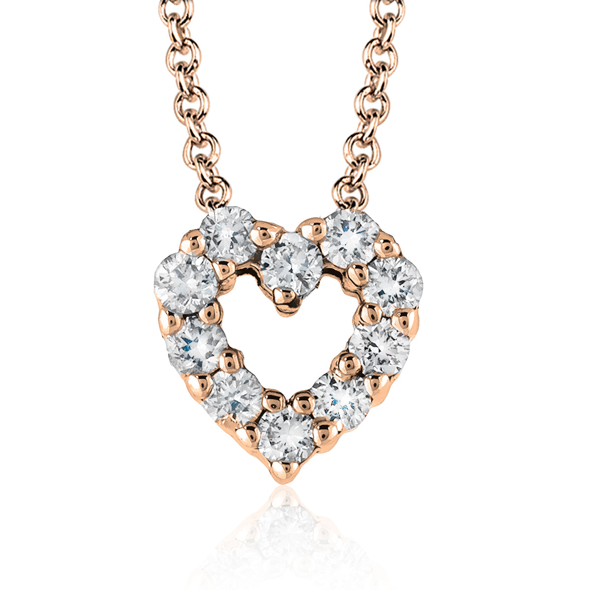 These charming heart-shaped pendants sparkle with round diamonds set in a delicate open-heart design, symbolizing love and elegance.
